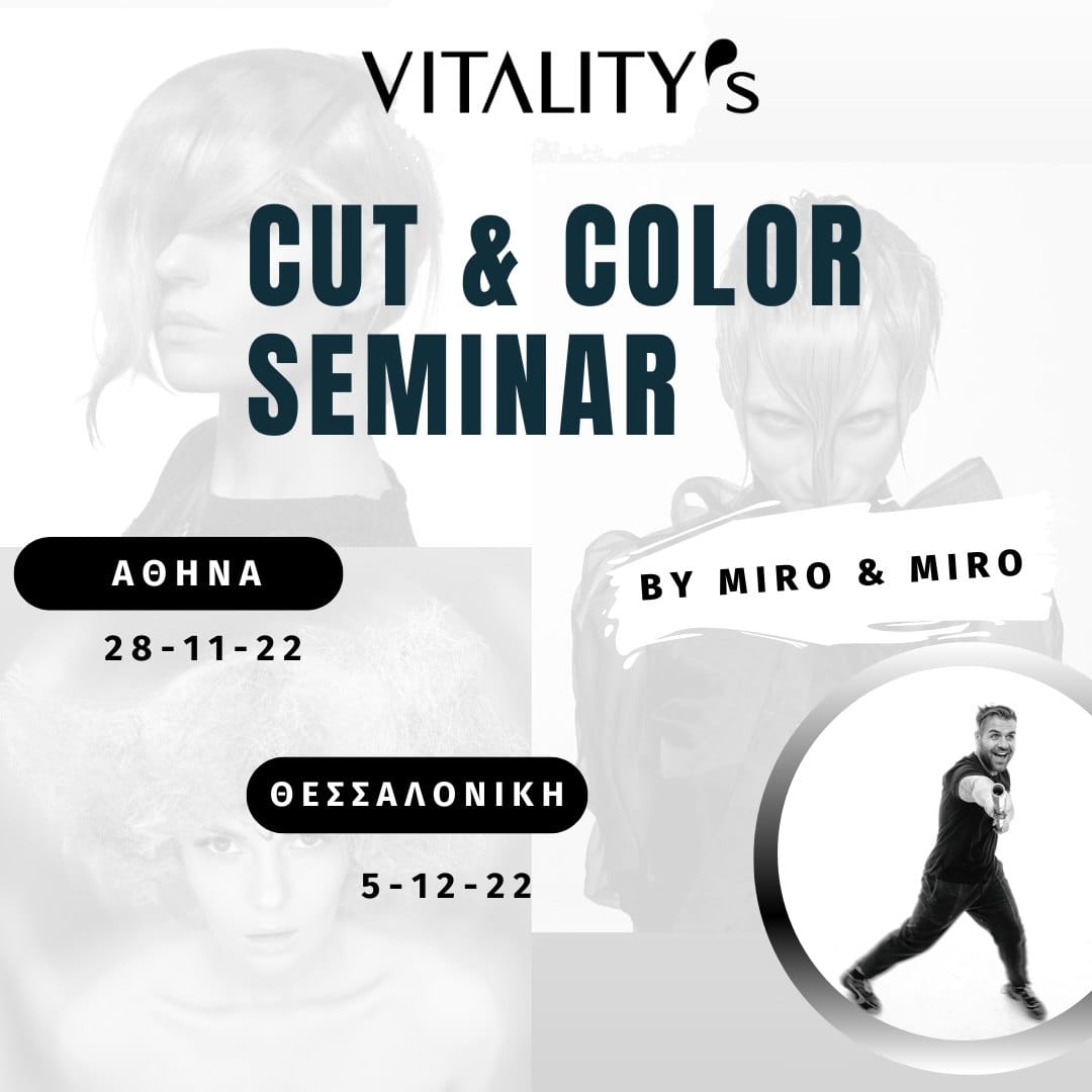 ✨Η Vitality’s σε συνεργασία με τον “Miro & Miro” @miromirohair , Colorist of the year 2022 by Estetica Hair Awards, , φέρνουν 2 μοναδικά σεμινάρια Cut & Color που δεν πρέπει να χάσετε !! Το πρόγραμμα περιλαμβάνει :