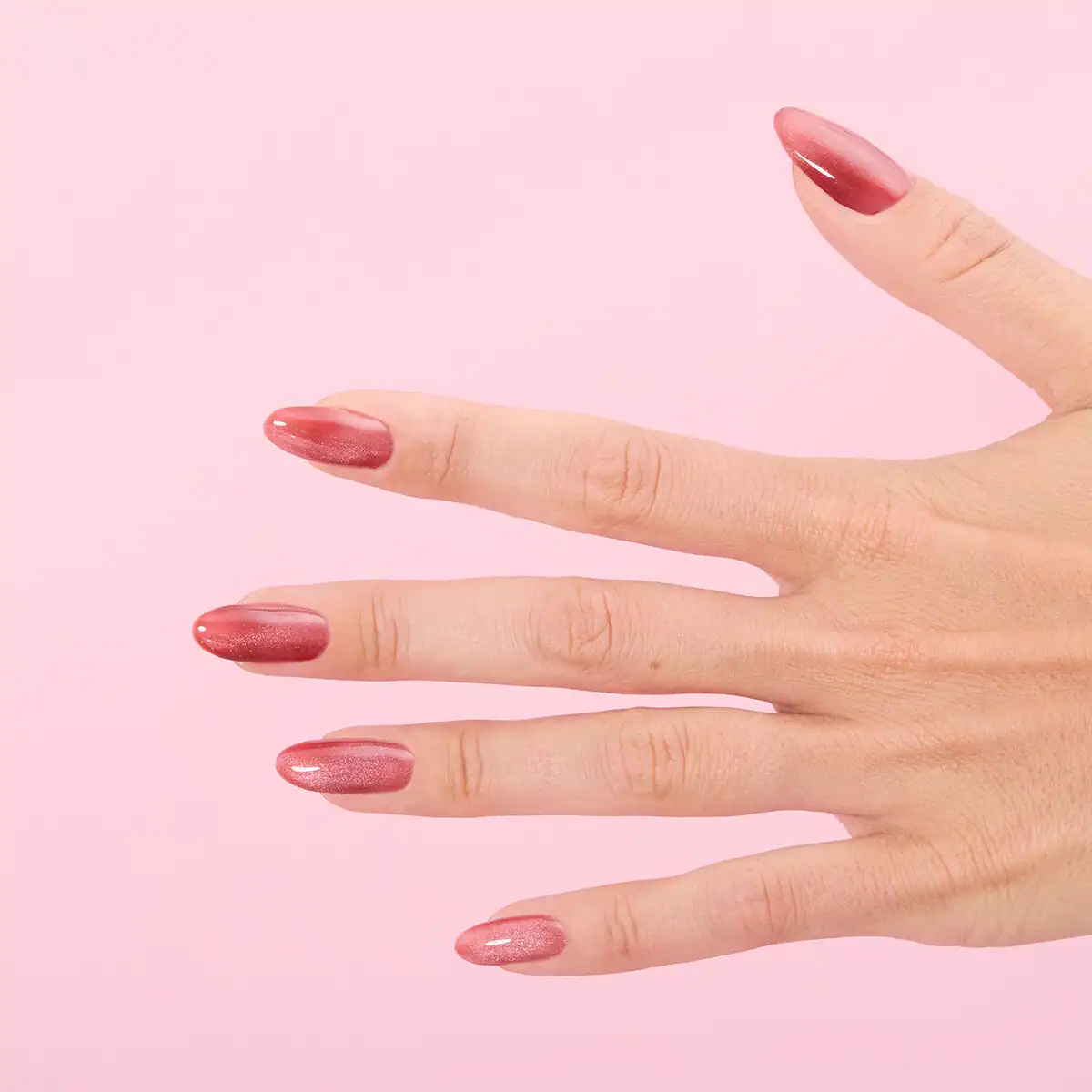 Ημιμόνιμο βερνίκι σε taupe καφέ-ροζ απόχρωση με Cat Eye εφέ, πλήρη κάλυψη και γυάλινη λάμψη που αλλάζει με το φως.