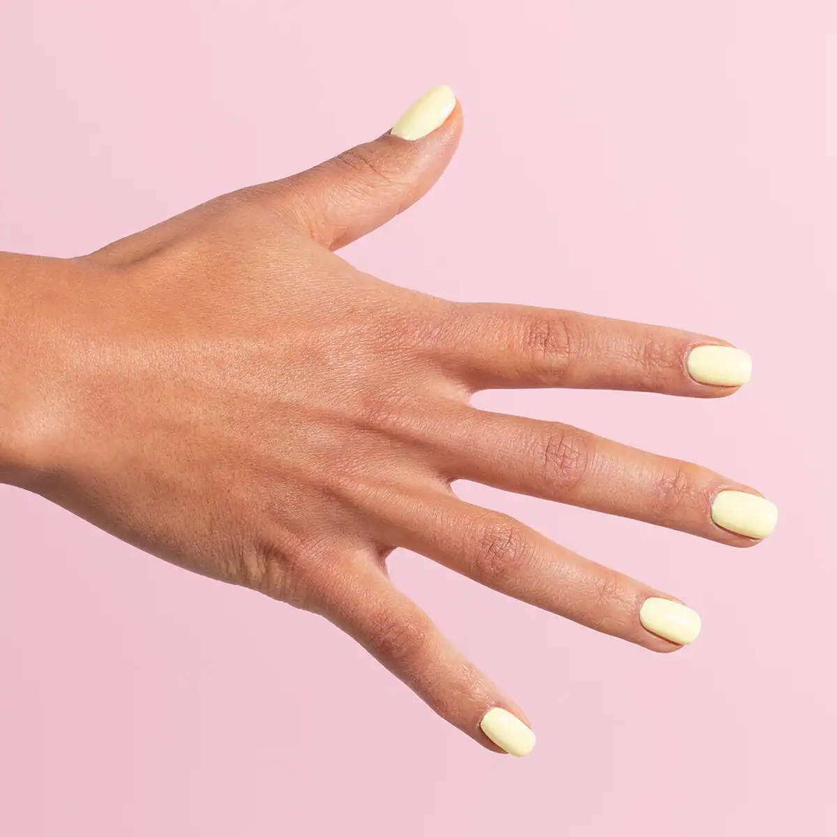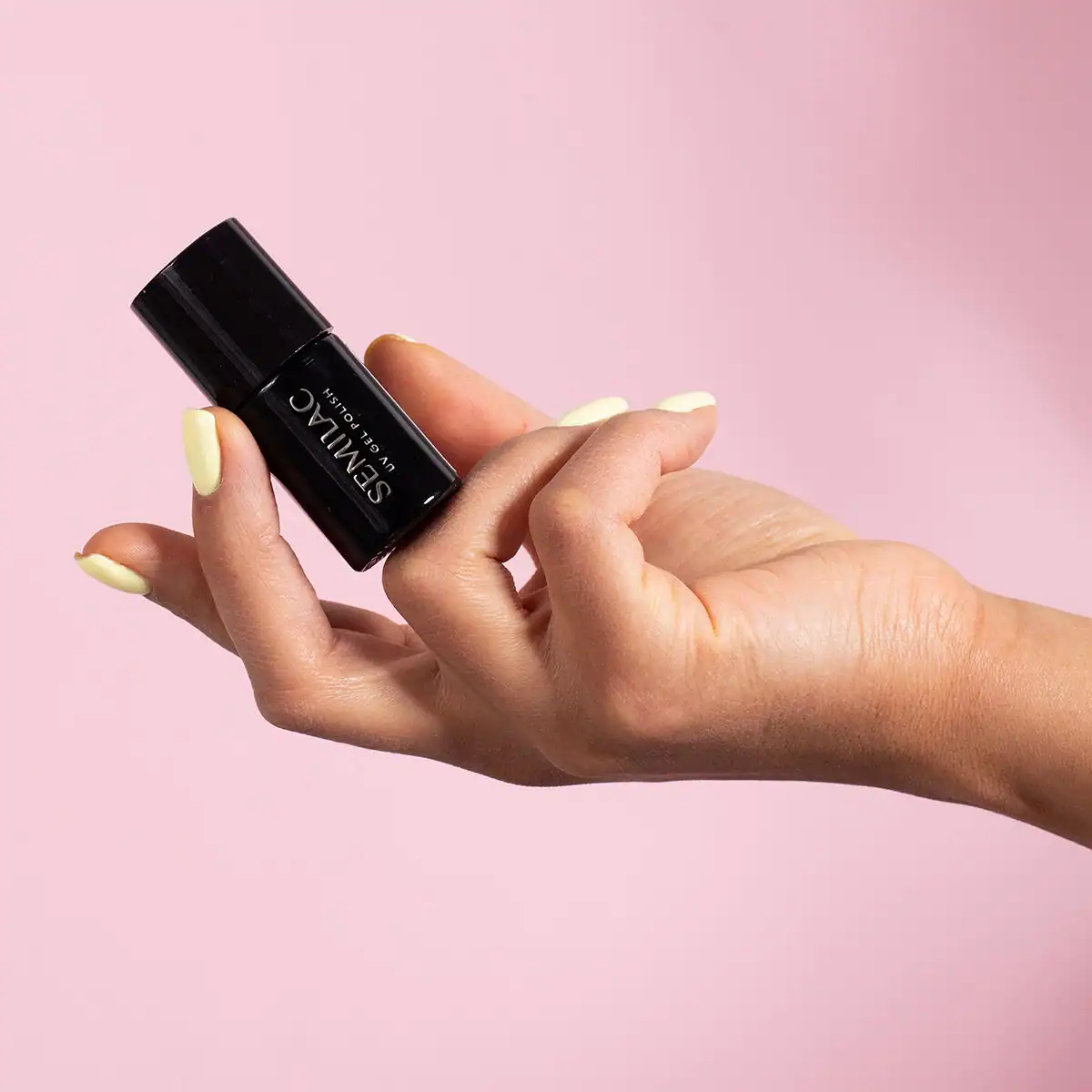 Ανοιχτό παστέλ κίτρινο ημιμόνιμο βερνίκι με κρεμώδη υφή και υψηλή κάλυψη, για φωτεινό και μοντέρνο manicure.