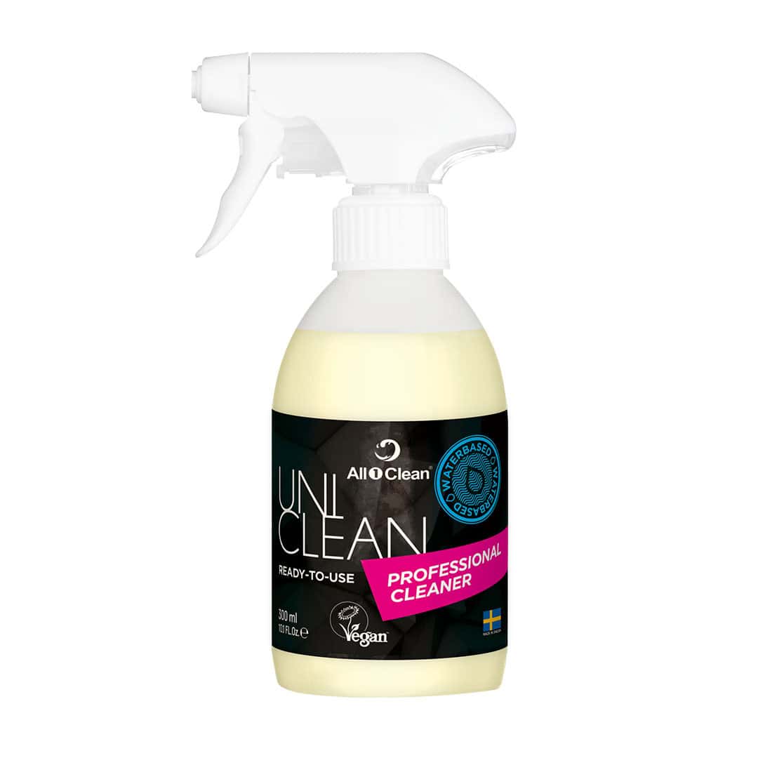Το UniClean είναι η ιδανική λύση για τον καθαρισμό διαφόρων τύπων επιφανειών, όπως καρέκλες κομμωτηρίου, νιπτήρες, τραπέζια μανικιούρ, ταπετσαρίες βινυλίου, γυαλί, καθρέφτες, στεγνωτήρες μαλλιών, σίδερα, πάγκοι, πορσελάνη, χρώμιο, ξύλο κ.λπ.
