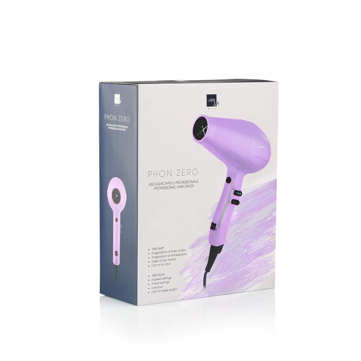 Επαγγελματικό σεσουάρ μαλλιών PHON ZERO 1800W, με 2 ρυθμίσεις ταχύτητας και 3 ρυθμίσεις θερμοκρασίας.