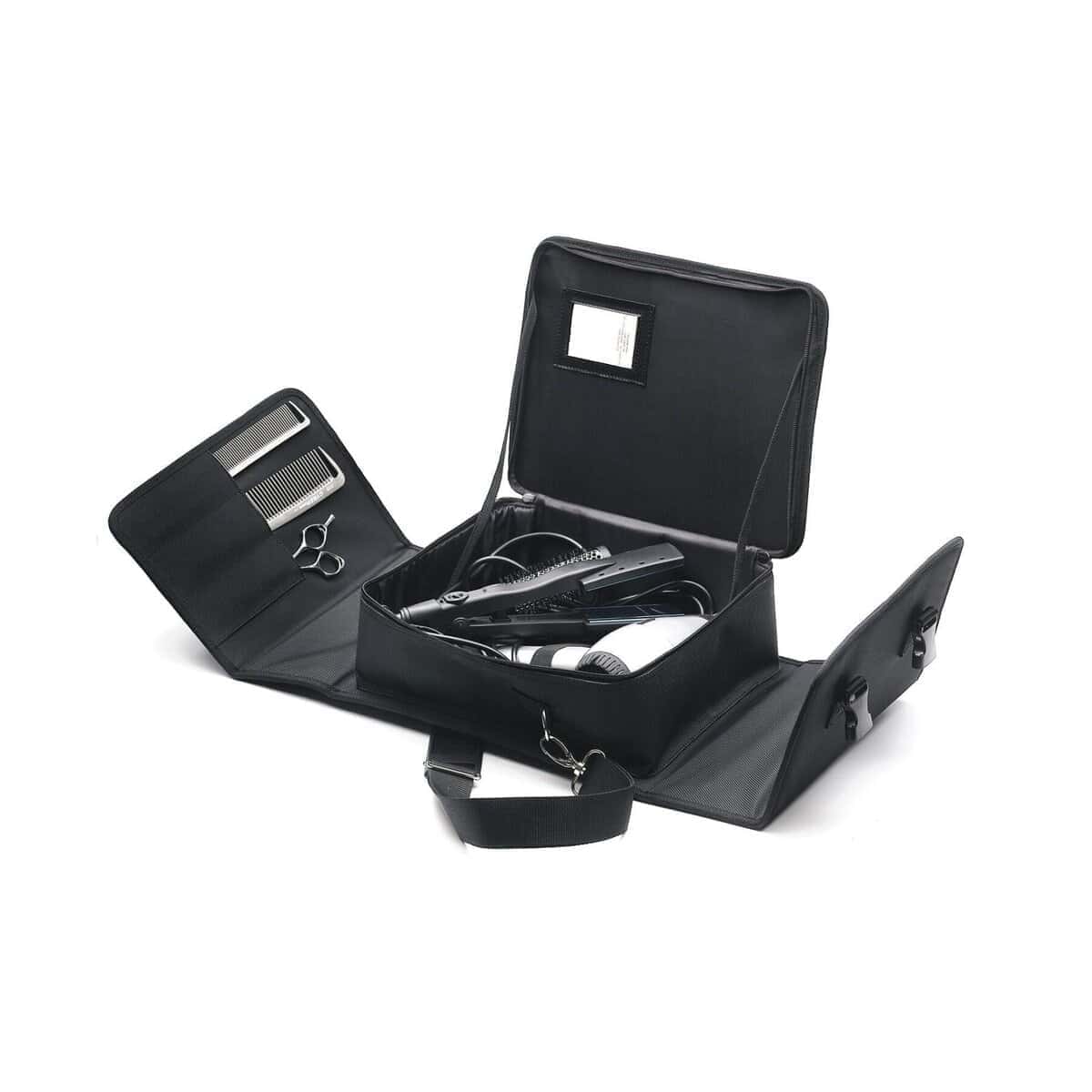 Πρακτική τσάντα μεταφοράς εργαλείων και αξεσουάρ σε μαύρο χρώμα.