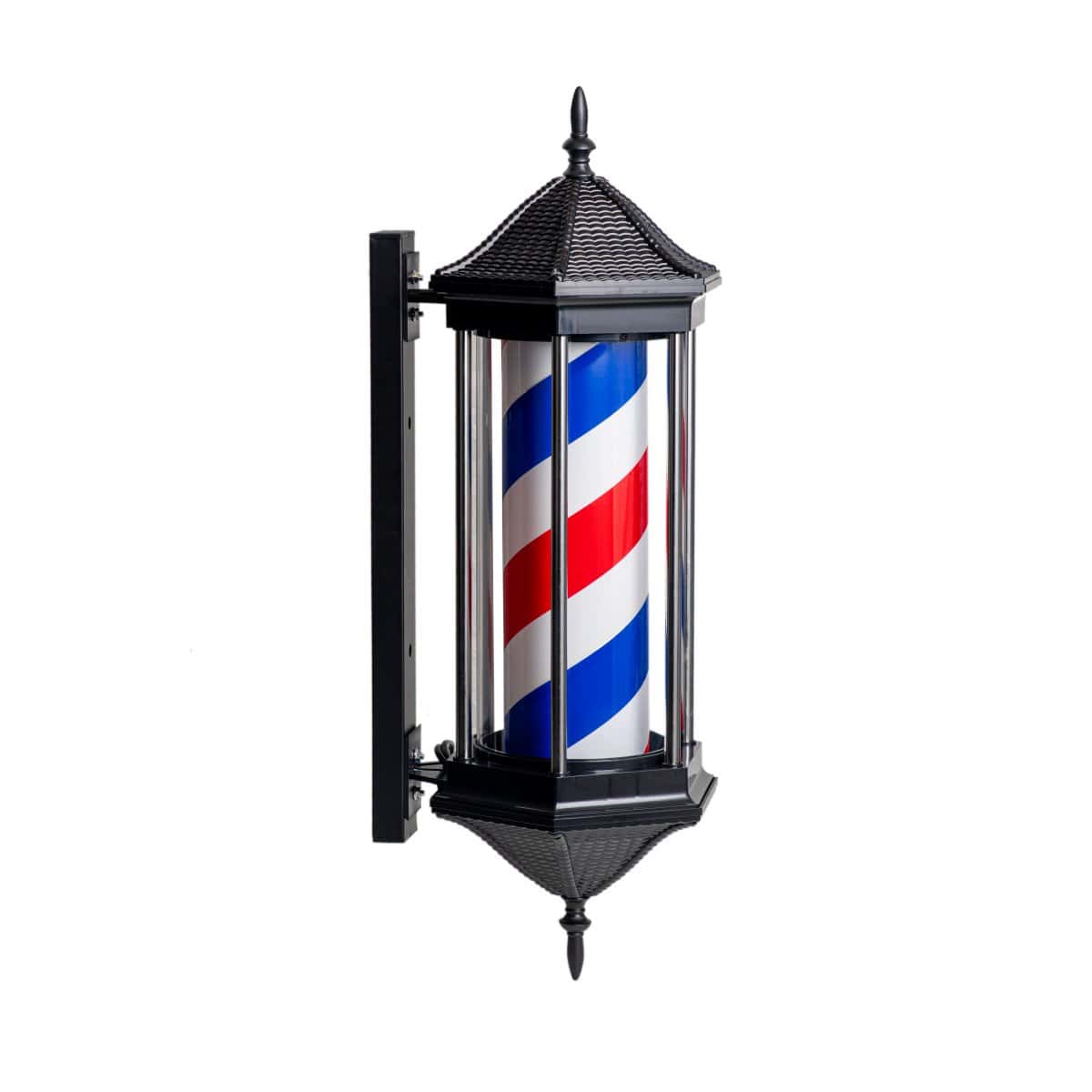 Φάρος κουρείου φωτιζόμενος, περιστρεφόμενος και αδιάβροχος, σε εξάγωνο vintage σχεδιασμό.