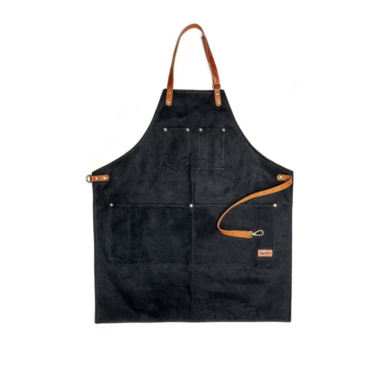 - Ποδιά barber εξαιρετικής ποιότητας φτιαγμένη από κερωμένο καμβά, αληθινό δέρμα και ορύχαλκο.