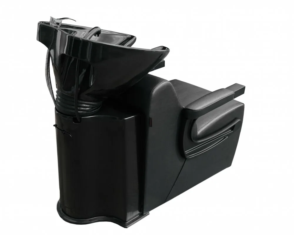 Ο λουτήρας VM-107 συνδυάζει κομψό, συμμετρικό design με εργονομία και λειτουργικότητα, προσφέροντας άνεση στον πελάτη και ευκολία στον επαγγελματία. Διαθέτει αναπαυτικό κάθισμα επενδεδυμένο με εύκολα καθαριζόμενη δερματίνη, μαξιλαρωτά μπράτσα και κεραμικό νιπτήρα που ρυθμίζεται στην κλίση του. Συνοδεύεται από μπαταρία υψηλής πίεσης, τηλέφωνο λουσίματος και σωλήνες σύνδεσης. Η παροχή νερού μπορεί να συνδεθεί από κάτω.