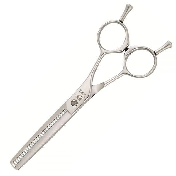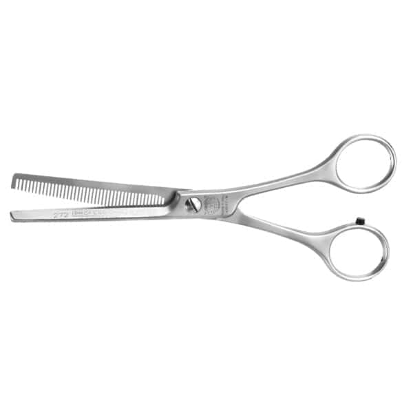 Τα δόντια των ψαλιδιών αραίωσης είναι λυγισμένα με τέτοιο τρόπο ώστε η λεπίδα να χαράζει τα δόντια ευθεία. Όχι μόνο τα μαλλιά κόβονται ευθεία, αλλά παραμένουν και στη θέση τους. Για να βελτιώσουμε ακόμη περισσότερο την ακρίβεια του κοψίματος, κάθε ξεχωριστό δόντι έχει επίσης εφοδιαστεί με λέιζερ και τρεις αυλακώσεις