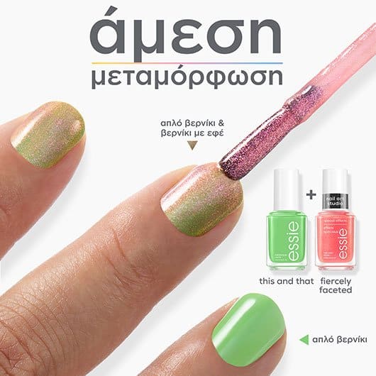 Ανακατέψτε το Essie This and That στην εμφάνισή σας και δώστε στο manicure σας έναν παιχνιδιάρικο και ευέλικτο χαρακτήρα. Ένα πράσινο vegan βερνίκι νυχιών με κίτρινους και πράσινους τόνους που προσαρμόζεται εύκολα σε κάθε στυλ και συνδυάζεται ιδανικά με κάθε σας στρώση. Η απόχρωση αυτή αποπνέει δημιουργικότητα και ελευθερία έκφρασης, ιδανική για καθημερινά αλλά και πιο τολμηρά looks.