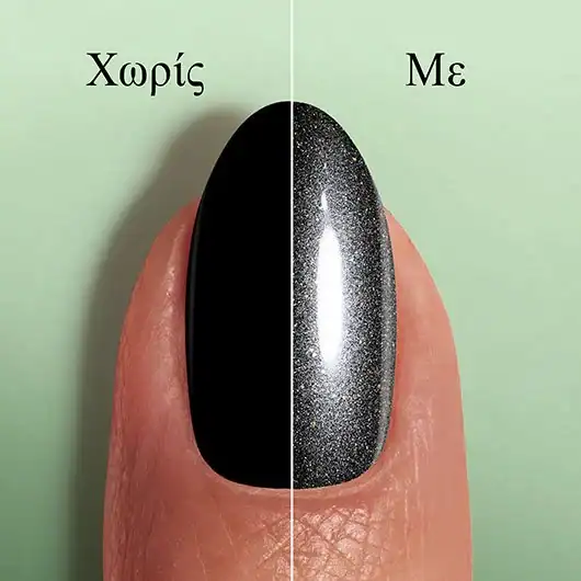 Top coat νυχιών μακράς διάρκειας με μείγμα από ασημένιες και χρυσές πέρλες που αντανακλούν το φως, χαρίζοντας διαμαντένια λάμψη.