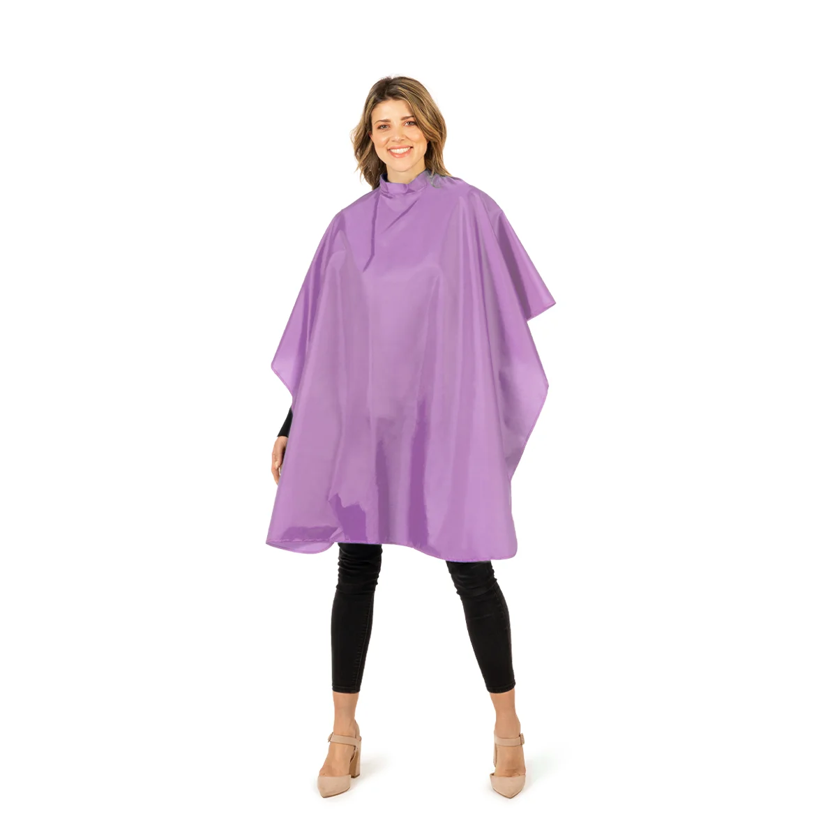 Επαγγελματική μπέρτα κουρέματος Easy Cape σε lilac χρώμα, από 100% ματ πολυεστέρα με ελαστικό λαιμό και κούμπωμα τύπου γαντζάκι. Ιδανική για κομμωτήρια.