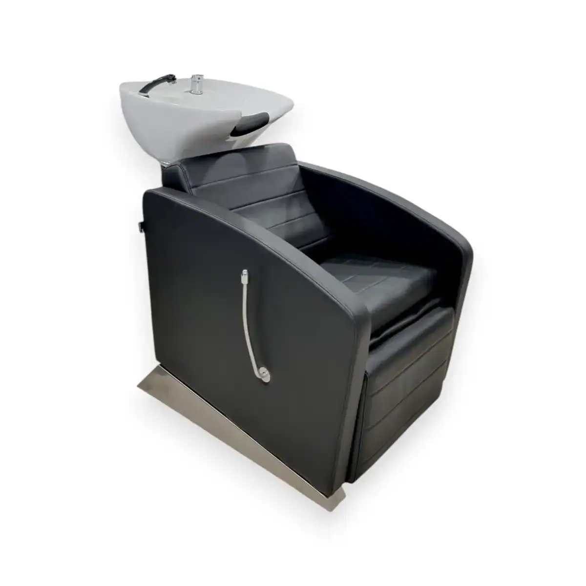 Κομψός και πρακτικός λουτήρας κομμωτηρίου με αναπαυτικό κάθισμα και λουτήρα από λευκή πορσελάνη, ιδανικός για επαγγελματική χρήση