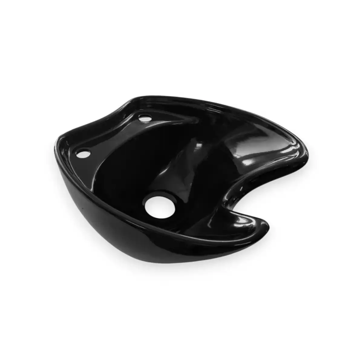 Ανθεκτική μαύρη πορσελάνη λουτήρα, ιδανική για επαγγελματικούς χώρους κομμωτηρίου. Κομψός σχεδιασμός, υψηλή ποιότητα και άνεση στο λούσιμο