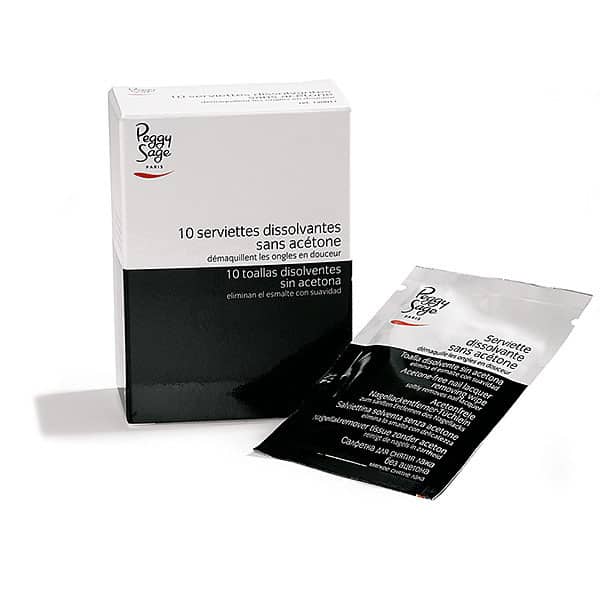 10 μαντηλάκια εμποτισμένα με αφαιρετικό βερνικιού. Χωρίς ασετόν. Ο ιδανικός σύντροφος στα ταξίδια: πάντα κοντά σας, μέσα στην τσάντα χρησιμεύουν για τα απρόοπτα μικρά ρετουσαρίσματα.