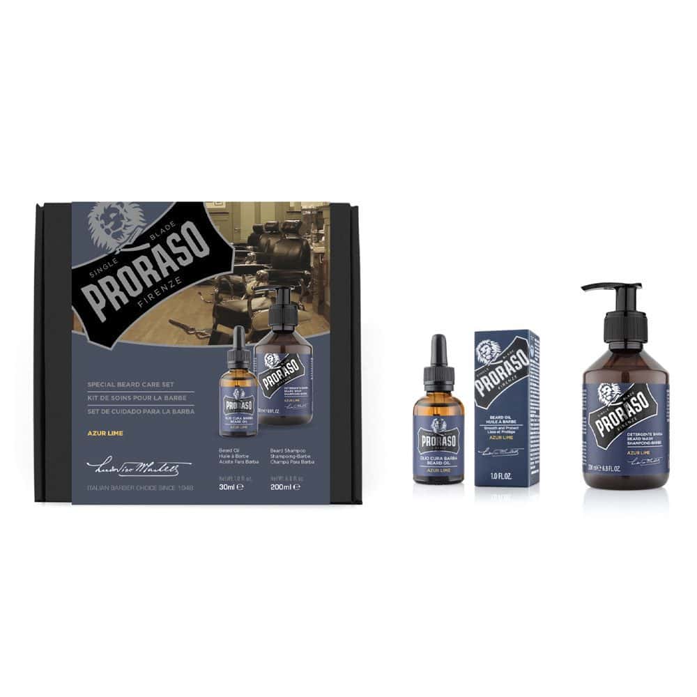 PRORASO DUO PACK BEARD GIFT SET AZUR LIME (BEARD OIL & BEARD SHAMPOO)
