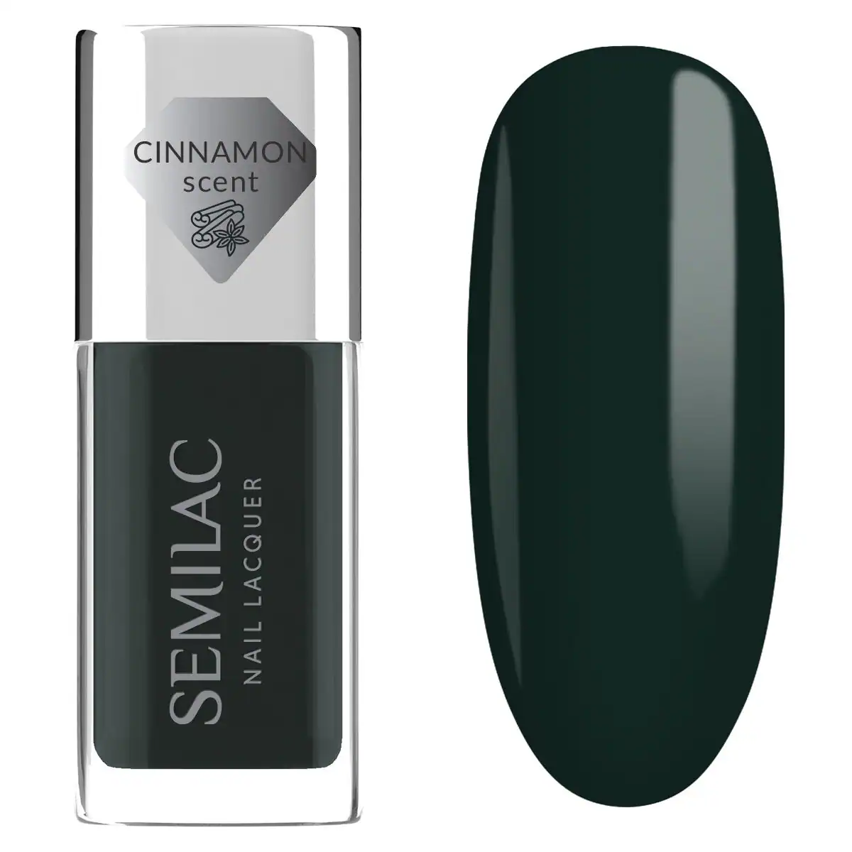 Semilac Nail Lacquer 114 Bottle Green 9ml, βαθύ πράσινο βερνίκι με πλήρη κάλυψη, gel-like λάμψη, άρωμα κανέλας και διάρκεια έως 8 ημέρες χωρίς λάμπα.