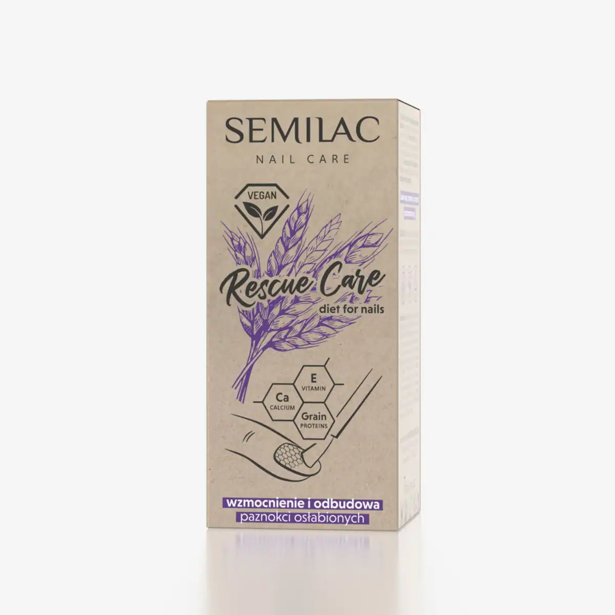 Το Semilac Rescue Care είναι θεραπεία για αδύναμα νύχια με vegan φόρμουλα. Η καινοτόμα φόρμουλα δημιουργεί στην επιφάνεια του νυχιού μία προστατευτική ασπίδα, ενάντια στα χτυπήματα και τις εκδορές. Παράλληλα επιταχύνει την αναδόμηση των νυχιών και επαναφέρει την φυσική τους λάμψη. Η Rescue Care θεραπεία, είναι μία συμπυκνωμένη vegan φόρμουλα που θρέφει τα νύχια σας. Μόλις 10 μέρες αρκούν, για να παρατηρήσετε βελτίωση της κατάστασης των αδύναμων νυχιών σας αντάξια επαγγελματικής περιποίησης.
