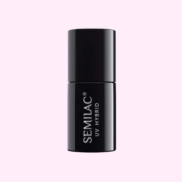 Εφάρμοσε μια στρώση top coat πάνω από πολυμερισμένο χρώμα Semilac. Αν χρειάζεται, πρόσθεσε μια σταγόνα προϊόντος για λεία επιφάνεια και άπλωσέ την απαλά. Πολυμέρισε σε UV LED λάμπα σύμφωνα με τον παραπάνω χρόνο.