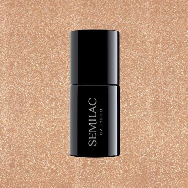 Ημιδιαφανές top coat Semilac με χρυσά σωματίδια και νιφάδες, για διακριτική λάμψη πολυτέλειας χωρίς wipe.