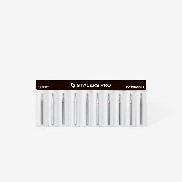 Ένα εργαλείο υψηλής ακρίβειας από τη σειρά EXPERT της STALEKS, με διάμετρο κεφαλής 1,6 mm, εργαζόμενο μέρος 4 mm, κόκκινη εγκοπή – μαλακή σκληρότητα και σχήμα σταγόνας. Η κεφαλή είναι ιδανική για επεξεργασία της περιοχή γύρω από το νύχι όπως και την μοντελοποίηση του, προσφέροντας εξαιρετική απόδοση τόσο για αρχάριους όσο και για έμπειρους τεχνικούς. Το σχήμα της «σταγόνας» το καθιστά κατάλληλο για επεξεργασία των νυχιών και της περιοχής γύρω από αυτά , χωρίς κίνδυνο τραυματισμού.