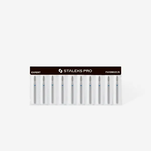 Ένα εργαλείο υψηλής ακρίβειας από τη σειρά EXPERT της STALEKS, με διάμετρο κεφαλής 2,1 mm, εργαζόμενο μέρος 8 mm, μπλέ εγκοπή – μέτρια σκληρότητα και σχήμα φλόγας. Η κεφαλή είναι ιδανική για λεπτομέρειες σε φυσικά νύχια, όπως η αφαίρεση ατελειών και η επεξεργασία των άκρων. Κατάλληλο για διακοσμητικά σχέδια και για επεξεργασία σκληρών περιοχών δέρματος. Διαθέτει επικάλυψη διαμαντιού για μεγάλη διάρκεια ζωής και αντοχή στην αποστείρωση και απολύμανση