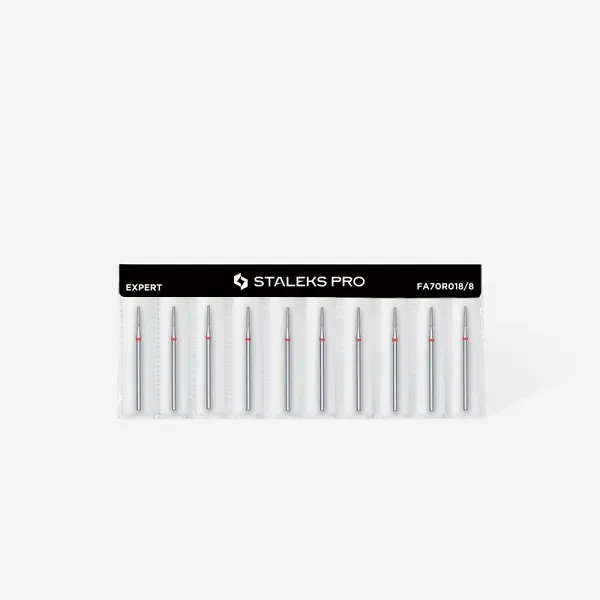 Ένα εργαλείο υψηλής ακρίβειας από τη σειρά EXPERT της STALEKS, με διάμετρο κεφαλής 1,8 mm, εργαζόμενο μέρος 8 mm, κόκκινη εγκοπή – μαλακή σκληρότητα και σχήμα κομμένου κώνου. Η κεφαλή είναι ιδανική για εργασία με φυσικές και τεχνητές επιφάνειες, διαμόρφωση του αναπτυσσόμενου μέρους της πλάκας του νυχιού και λείανση της επιφάνειας, προσφέροντας εξαιρετική απόδοση τόσο για αρχάριους όσο και για έμπειρους τεχνικούς. Το σχήμα του «κομμένου κώνου» το καθιστά κατάλληλο για επεξεργασία των νυχιών όπως και των επεκτάσεων τους , χωρίς κίνδυνο τραυματισμού