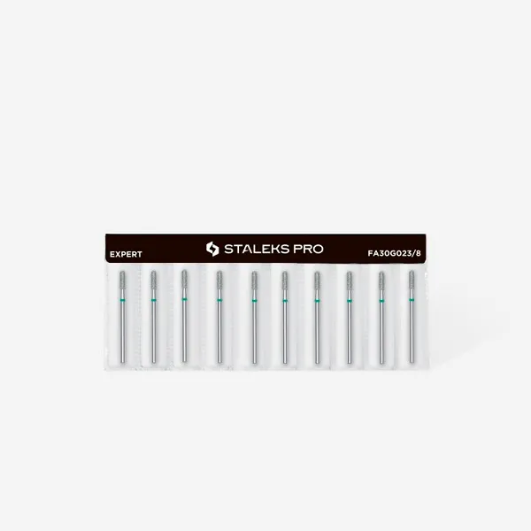 Ένα εργαλείο υψηλής ακρίβειας από τη σειρά EXPERT της STALEKS, με διάμετρο κεφαλής 2,3 mm, εργαζόμενο μέρος 8 mm, πράσινη εγκοπή – μεγάλη σκληρότητα και σχήμα στρογγυλού κυλίνδρου. Η κεφαλή είναι ιδανική για λεπτομερή επεξεργασία των νυχιών, προσφέροντας εξαιρετική απόδοση τόσο για αρχάριους όσο και για έμπειρους τεχνικούς. Το σχήμα του «στρογγυλού κυλίνδρου» το καθιστά κατάλληλο για επεξεργασία της επιδερμίδας όπως και των νυχιών , χωρίς κίνδυνο τραυματισμού.