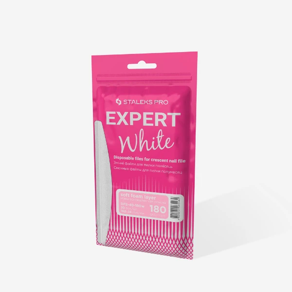 Οι λευκές ανταλλακτικές λίμες μισοφέγγαρο DFE-40-180W της Staleks Pro είναι αναλώσιμες, μονής χρήσης και ιδανικές για επαγγελματικό μανικιούρ και πεντικιούρ, με ισχυρή κόλλα για σταθερή εφαρμογή στη βάση λίμας.