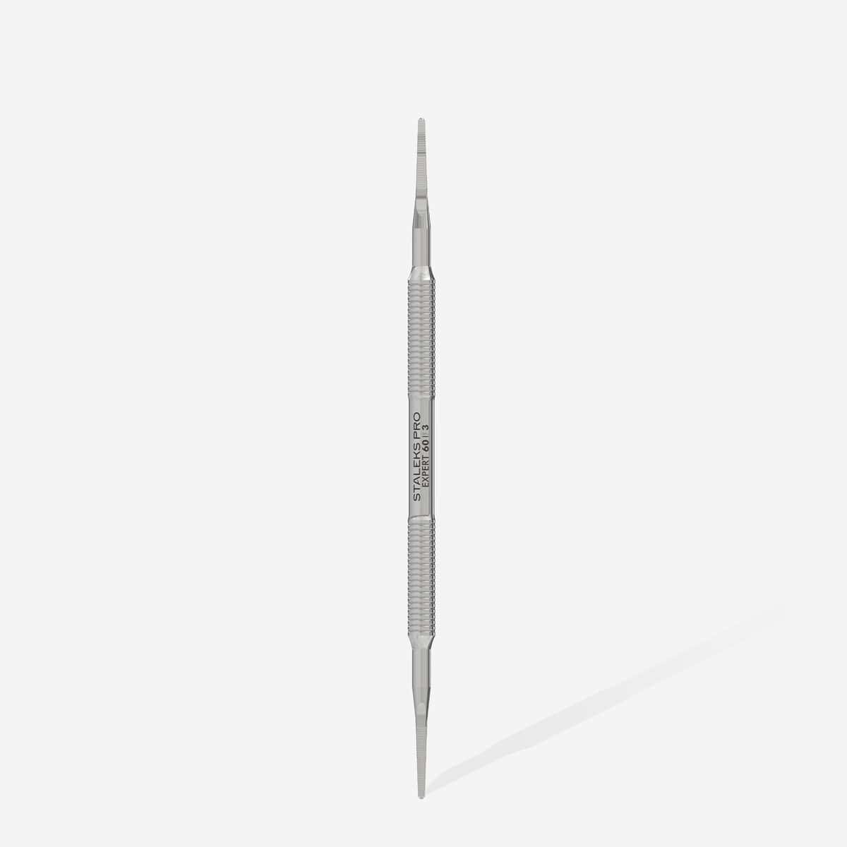 Το Εργαλείο Expert 60 | 3 της Staleks Pro, διπλής όψεως με μεταλλική λίμα εισφρύσεων είναι ένα επαγγελματικό εργαλείο με φαρδύ ίσιο τελείωμα και φαρδύ κυρτό τελείωμα, ιδανικό για καθαρισμό κάτω και γύρω από το νύχι, περιποίηση των κάλων και ιδανικό για προβλήματα ονυχοκρύπτωσης.