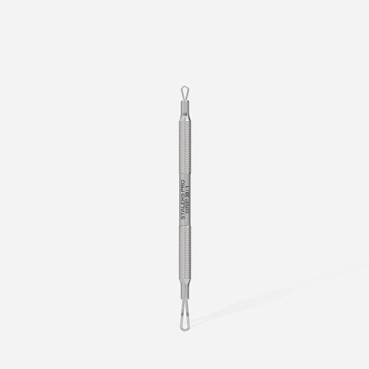 Το τρικομεντόν Double-Ended Loop Expert 30 | 1 της Staleks Pro είναι ένα επαγγελματικό εργαλείο καθαρισμού δέρματος διπλής όψης, σχεδιασμένο για ακριβή και ασφαλή απομάκρυνση των ρύπων, των μαύρων στιγμάτων και της λιπαρότητας.