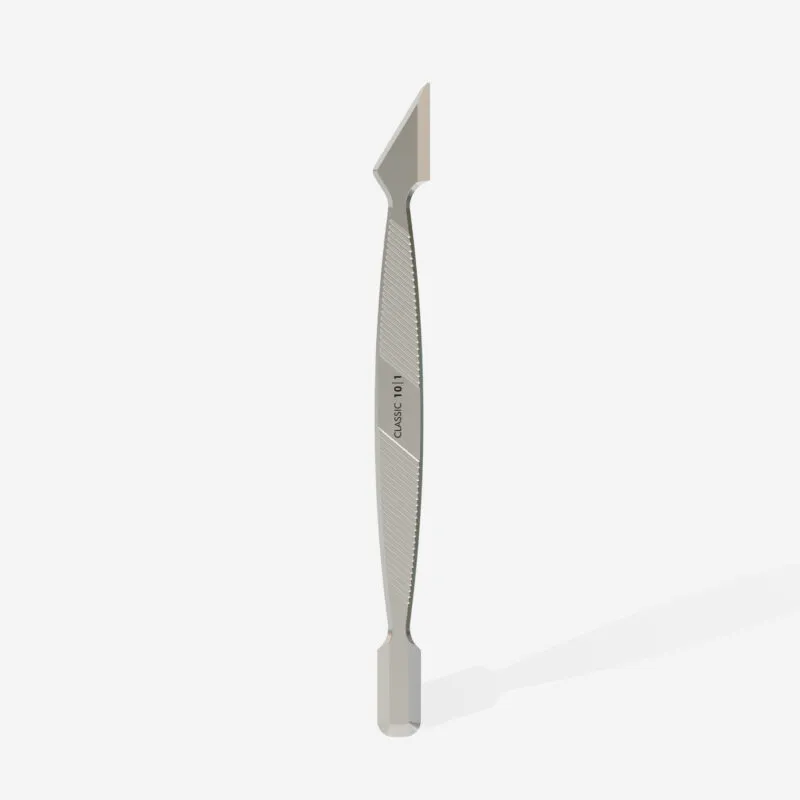 Το Σπρωχτηράκι διπλής όψης Classic 10 | 1 της Staleks Pro είναι ιδανικό για την απομάκρυνση επωνυχίων και τον καθαρισμό της ονυχοπλάκας με ακρίβεια και ασφάλεια, και για την καθημερινή φροντίδα των νυχιών στο σπίτι.