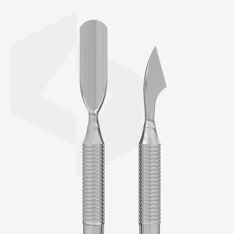 - Pusher – Η στενή καμπυλωτή πλευρά είναι σχεδιασμένη για να ανασηκώνει και να σπρώχνει τα πετσάκια, είναι ιδανική για πιο μικρά νύχια.