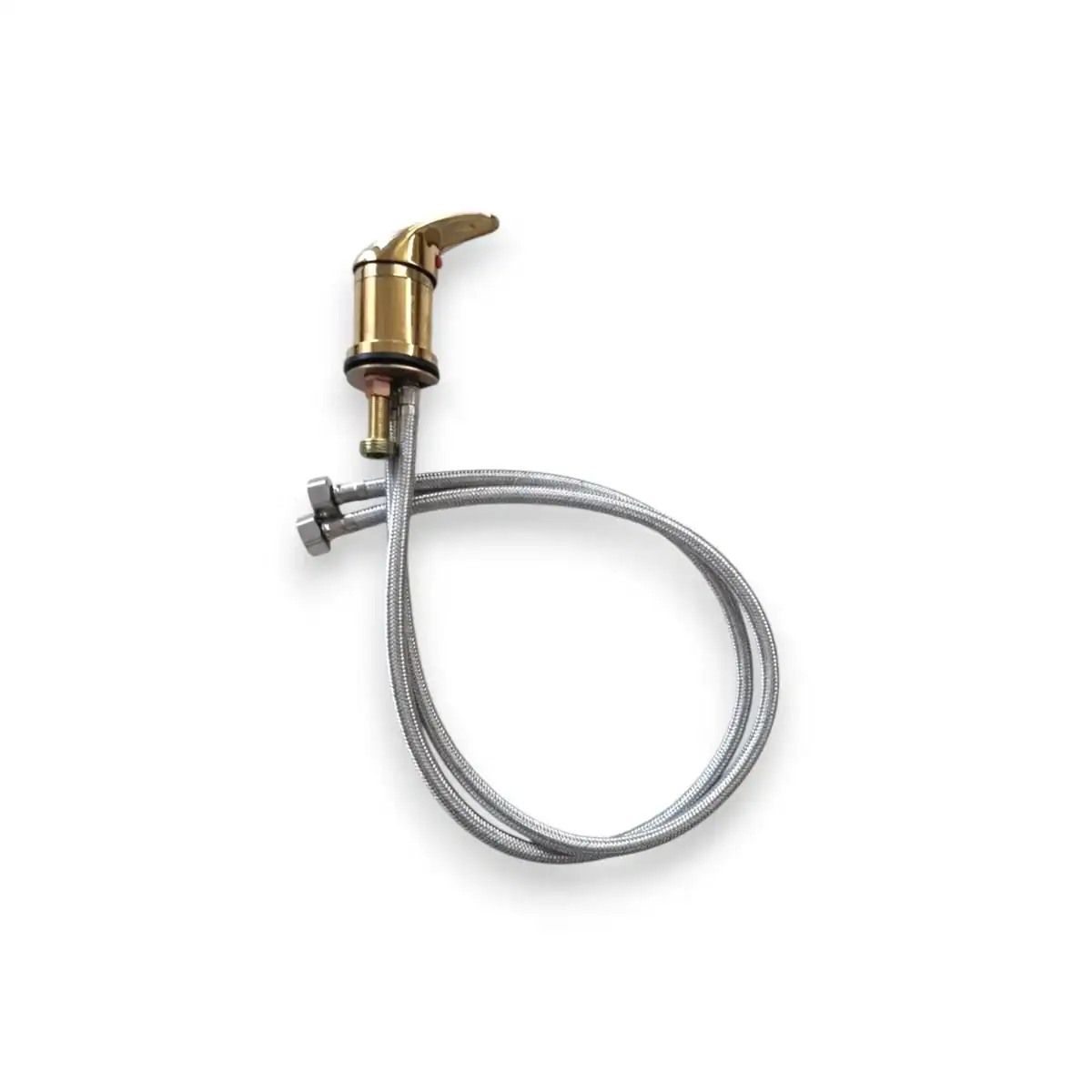Ανθεκτική βρύση λουτήρα κομμωτηρίου με εύκολη εγκατάσταση, σε χρυσή απόχρωση. Κατάλληλη για επαγγελματική χρήση σε κομμωτήρια. Περιλαμβάνει εύκαμπτα σωληνάκια σύνδεσης